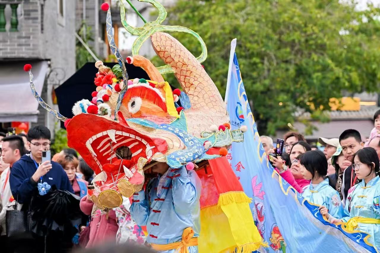2026开年之际,番禺区沙湾古镇景区推出一系列鳌鱼主题活动。“沙沙湾湾”IP人偶和大家庆贺新年,还有沙湾鳌鱼巡游共舞,鳌鱼舞师傅现场展示鳌鱼舞技艺,感兴趣的游客能亲身体验一番,活动期间还推出一款可以舞动的沙湾鳌鱼DIY,预祝大家元旦快乐,独占鳌头。