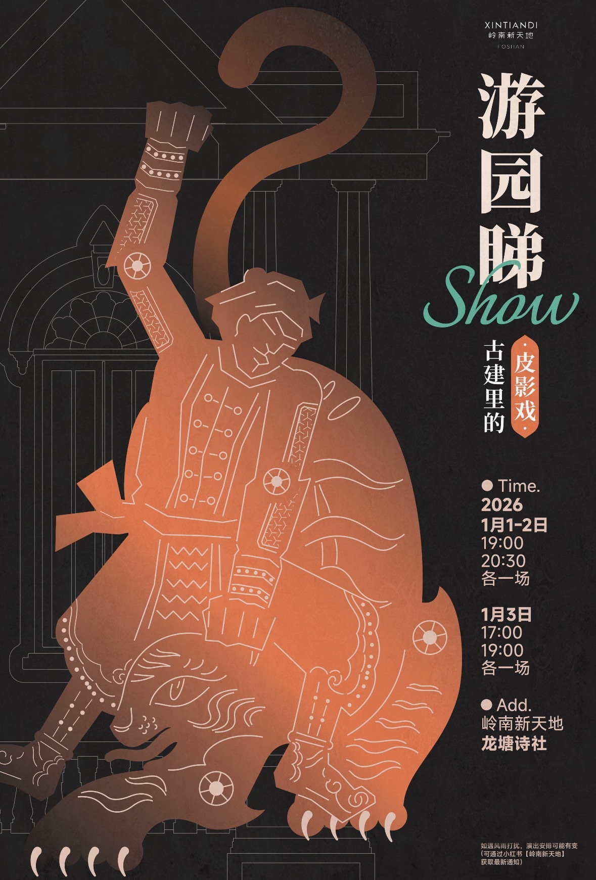 元旦假期一连三日,岭南新天地百年古建筑龙塘诗社“‘游园睇SHOW’古建里的皮影戏”将上演多场非遗皮影戏,古老的皮影艺术与现代故事元素巧妙融合,展现中国传统文化的魅力与创新活力。
